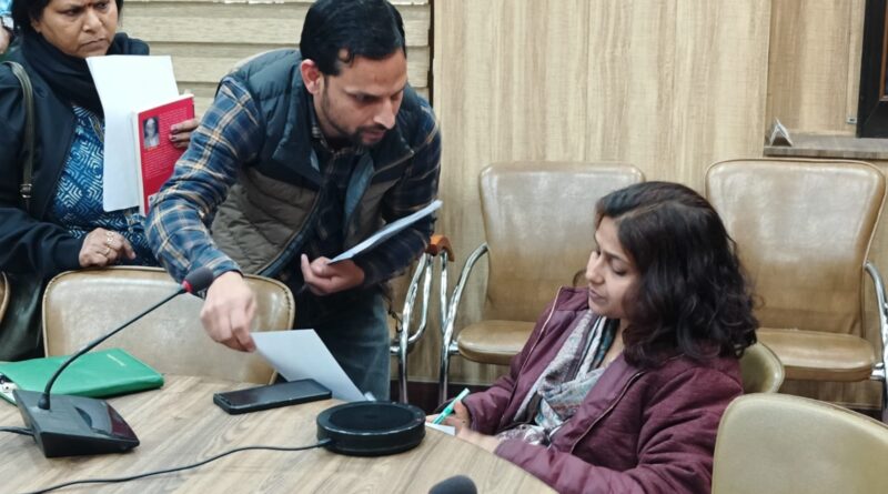 जिलाधिकारी सोनिका के निर्देशों के अनुपालन में आज मुख्य विकास अधिकारी सुश्री झरना कमठान की अध्यक्षता में कलेक्ट्रेट सभागार में जनसुनवाई का अयोजन किया गया। जनसुनवाई में 97 शिकायत प्राप्त हुई। जिनमे अधिकतर शिकायत भूमि से संबंधी प्राप्त हुई, इसके अतिरिक्त आपसी विवाद, समाज कल्याण प्रशिक्षण, एनएच मुआवजा, एनएच रोड ठीक कराने, जल जीवन मिशन जल निगम, एमडीडीए, पुलिस, नगर निगम, उरेडा, पशुपालन विभाग आदि विभागों से संबंधित प्राप्त हुई।