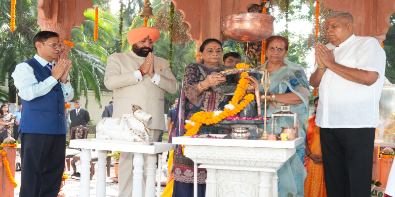 उपराष्ट्रपति जगदीप धनखड़, डॉ. सुदेश धनखड़ एवं राज्यपाल गुरमीत सिंह ने की राजभवन स्थित राजप्रज्ञेश्वर महादेव मंदिर में पूजा-अर्चना