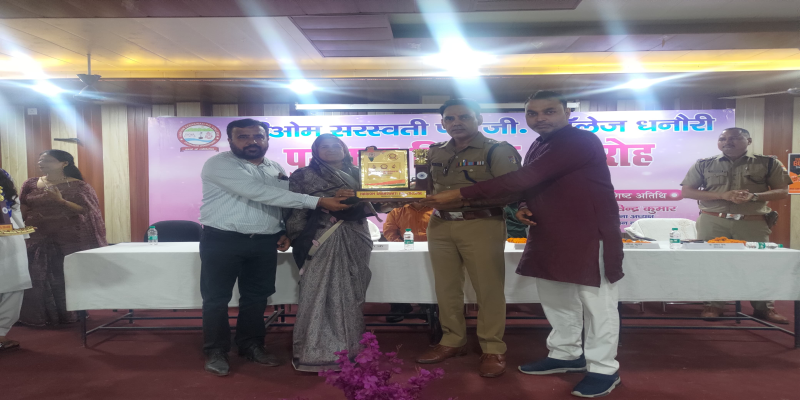 बुधवार को हरिओम सरस्वती पीजी कॉलेज धनौरी में वार्षिक पुरस्कार वितरण समारोह मनाया गया। समारोह में वर्ष भर आयोजित होने वाली विभिन्न प्रतियोगिताओं के विजेता छात्र-छात्राओं को पुरस्कार किया गया। मुख्य अतिथि प्रोफेसर वीएन खाली ने कहा कि पुरस्कार प्राप्त करने वाले छात्र-छात्राएं अन्य के लिए प्रेरणा बनेंगे। पिरान कलियर के थाना अध्यक्ष रविंद्र कुमार ने कहा कि छात्र-छात्राओं को जीवन में कभी नशा न करने का संकल्प लेना चाहिए। हमें नशा मुक्त भारत के निर्माण की दिशा में आगे बढ़ना है। राजकीय डिग्री कॉलेज मरगूबपुर के प्रोफेसर डॉ मुकेश गुप्ता ने कहा कि जीवन पथ पर अनेक संघर्ष हैं। प्रतियोगिताएं हमें जीवन पथ के लिए तैयार करती हैं। आरएसएस के पूर्व जिला कार्यवाह डॉ. अंकित सैनी ने कहा कि जीवन में जीतने के साथ ही हार का महत्व है। हार हमें ज्यादा प्रयास के साथ बड़ी सफलता के लिए प्रेरित करती है।