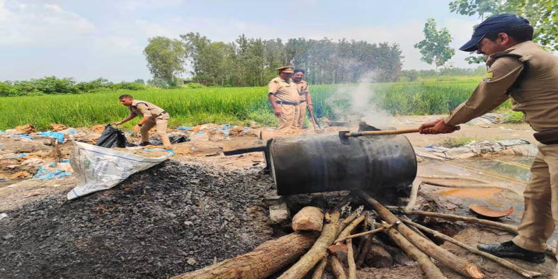 जंगल में बन रही कच्ची शराब पर आबकारी विभाग की कार्रवाई