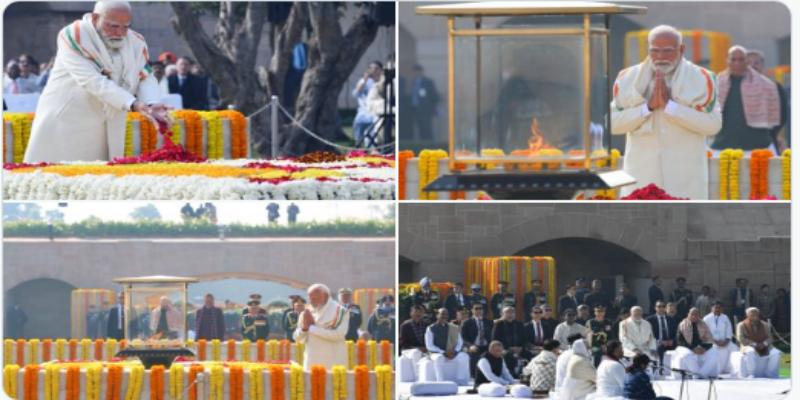 महात्मा गांधी की पुण्यतिथि पर प्रधानमंत्री मोदी ने राजघाट पर दी श्रद्धांजलि