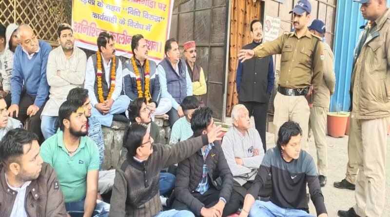 कार्रवाई के खिलाफ राम नाट्य संस्थान ने निगम में दिया धरना